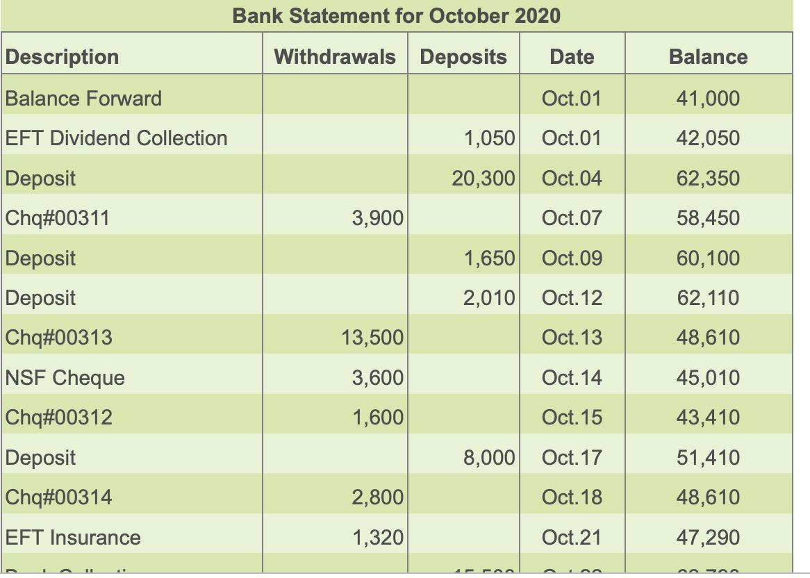Solved Bank Statement For October 2020 Description Chegg Com